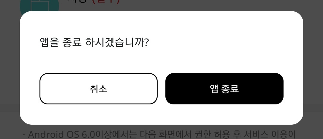 출처 : 마이케이티 앱 메인화면에서 뒤로 가기 버튼을 눌렀을 때,