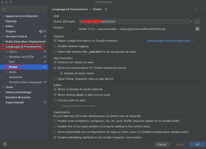 which flutter명령어를 실행해 명령을 실행할 수 있는지 확인