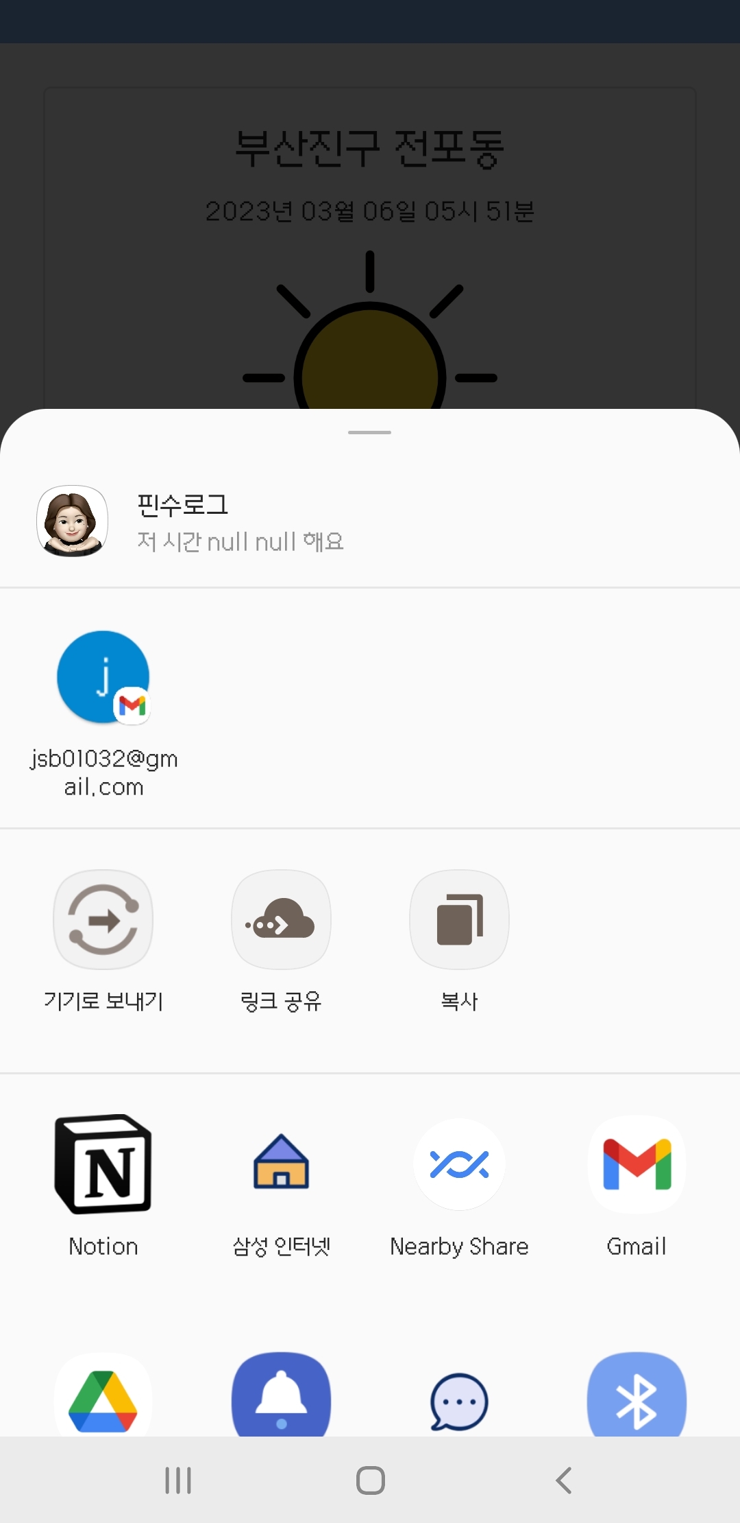 안드로이드 공유하기 기능으로 해당 앱 실행 후 원하는 페이지로 이동.