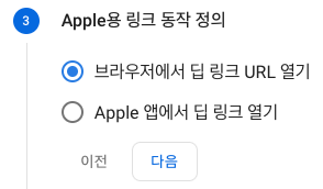 - 기본값은 브라우저에서 딥 링크 URL 열기로 보인다.
