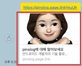 - 성공하면 https://pinslog.page.link/TwTF2t56x7p5NdWu8 다음과 같이 링크가 생성된다.