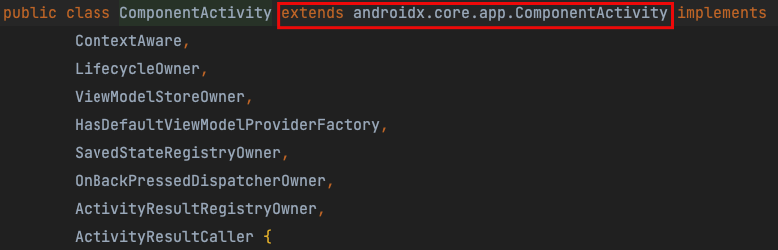 ComponentActivity → androidx.core.app.ComponentActivity → ActivityComponentActivity