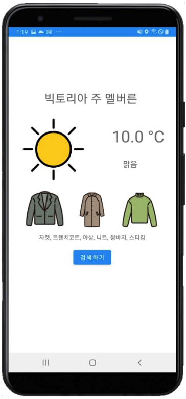 최고 기온과 최저 기온에 대한 옷차림을 확인할 수 있다.기술 소개