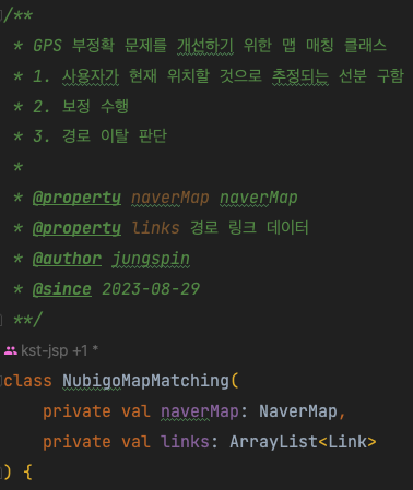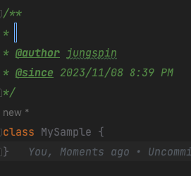 이후 클래스를 만들어 해당 키워드를 입력하면 아래와 같이 주석이 만들어지는 것을 확인할 수 있다.