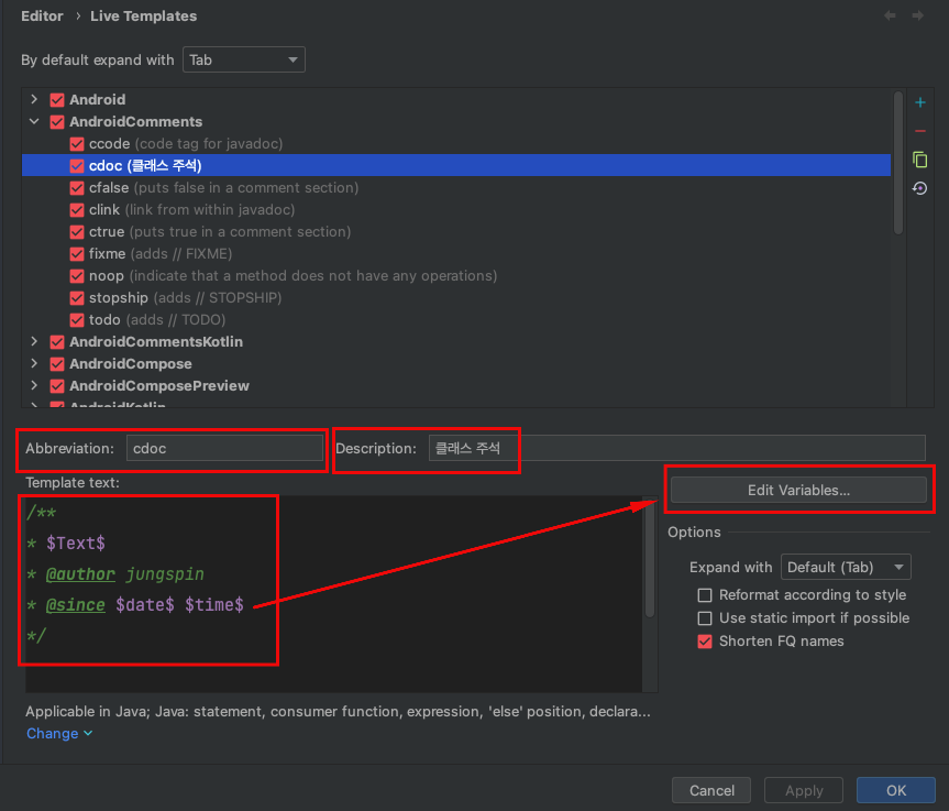 - [Android Studio] Live Template으로 JavaDoc 쉽게 작성하기2023년 11월 08일 20시 43분 09초에 업로드 된 글입니다.작성자: 핀수728x90반응형