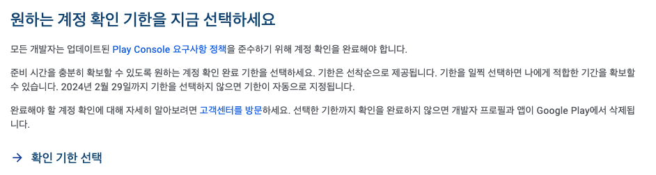 - [Google Play Console] 개발자 계정 확인 기한2023년 11월 11일 14시 43분 21초에 업로드 된 글입니다.작성자: 핀수728x90반응형