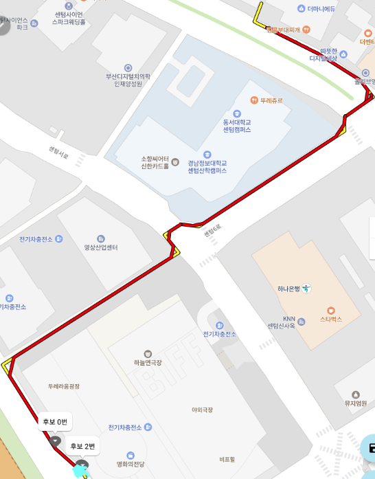 현재 위치가 후보 선분 바깥에 위치할 때는 어떻게 하면 좋을지를 고민하다 이전 위치 데이터를 가지고 있기 때문에 그걸로 평균 이동 거리를 구해 후보 선분의 시작점에서부터 이동 거리만큼 이동한 좌표를 반환하도록 해 추정값을 사용하도록 했다.