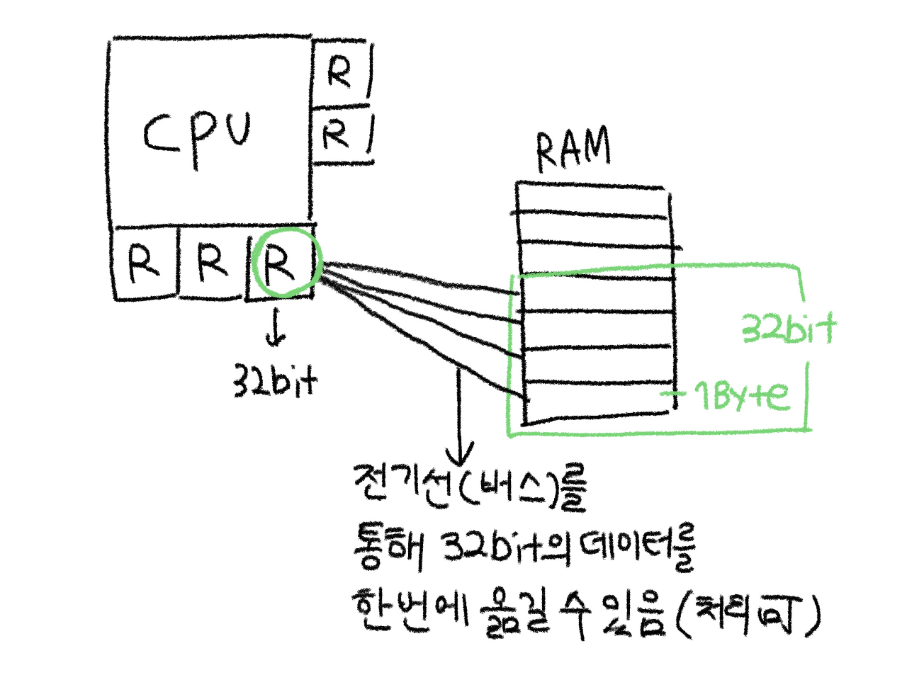 32bit → 한번에 처리(CPU)할 수 있는 데이터의 양이 32bit라는 의미