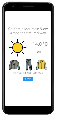 앱이 실행되면 현재 위치의 체감 온도를 통해 옷 차림을 어떻게 하면 좋은지
