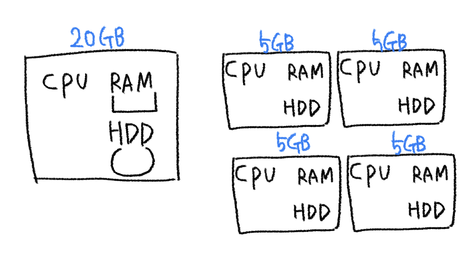 적당한 사양의 컴퓨터 4대가 더 빠르다는 의미이다.