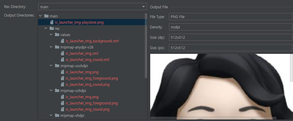 생성을 하고 나면 자동으로 icon 과 roundicon 이 생성되는 것을 알 수 있다.