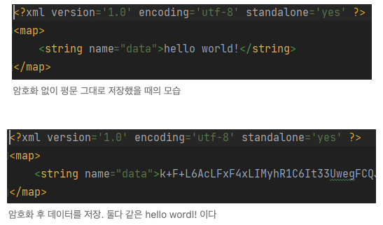 이 친구를 이용해 해당 데이터를 암호화하고 암호화된 정보를 SharedPreferences 에 저장할 것이다.